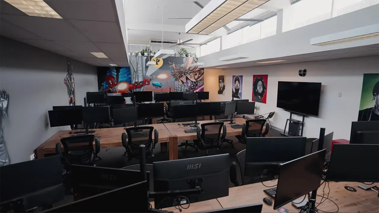 Fast internet, dual monitors, meeting rooms, recording studio, and quiet breakout areas.